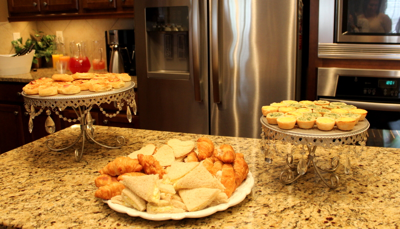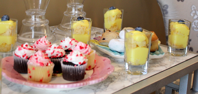 We had little tea sandwiches that included: egg salad on wheat bread // chicken salad in mini croissants // heart shaped pb&j. I served spinach and cheese mini quiche and for the first time ever a ham and swiss puff pastry pinwheel. (My friend Christina and I literally assembled and threw that in the oven last minute and it was pretty tasty!)