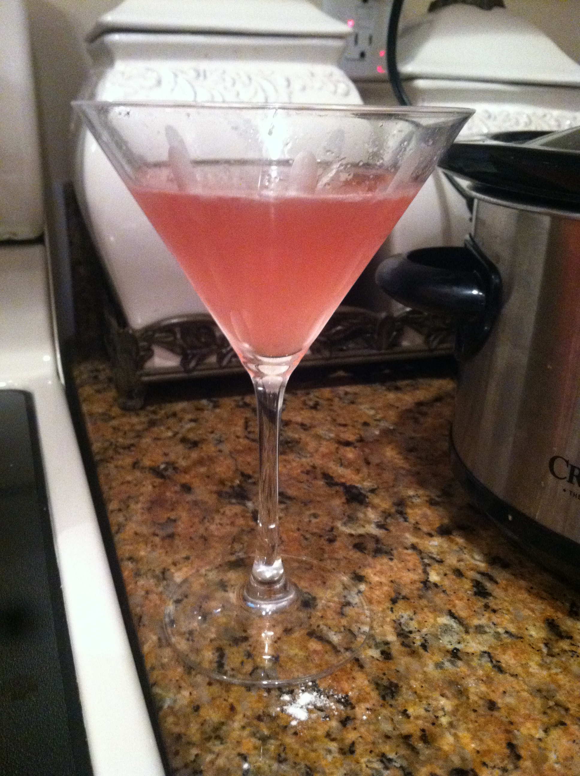And so. Here I am. Mini went to bed. Sort of. Mike is watching Jerseylicious. (It’s his guilty pleasure people..) And so while I should be blogging about my fantastic Target clearance accessory find, or how Mini painted the bathtub, or our weekend trip to Magic Kingdom, I am instead just waiting for dinner to come out of the crock pot. With my cosmo to keep me company.