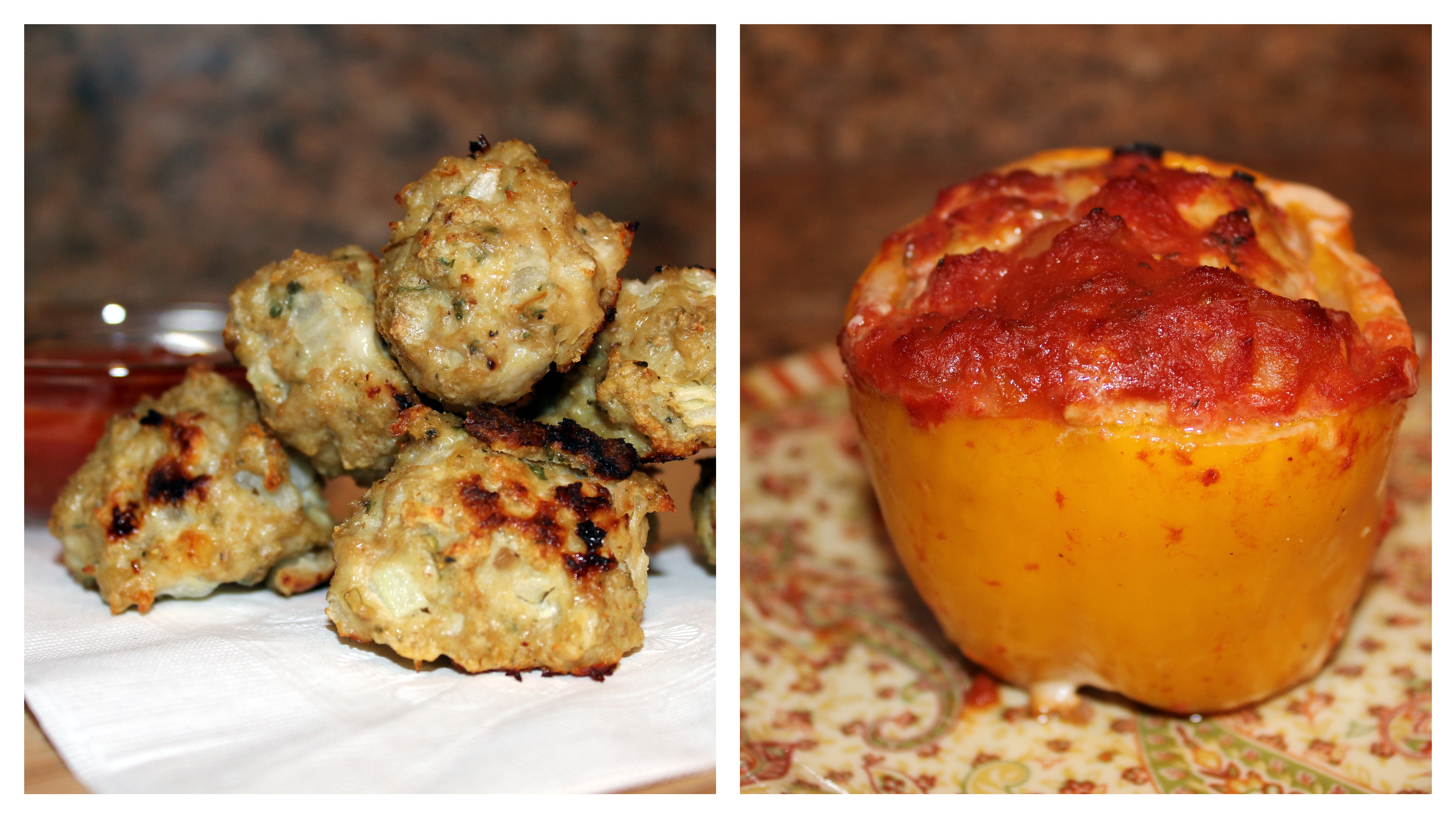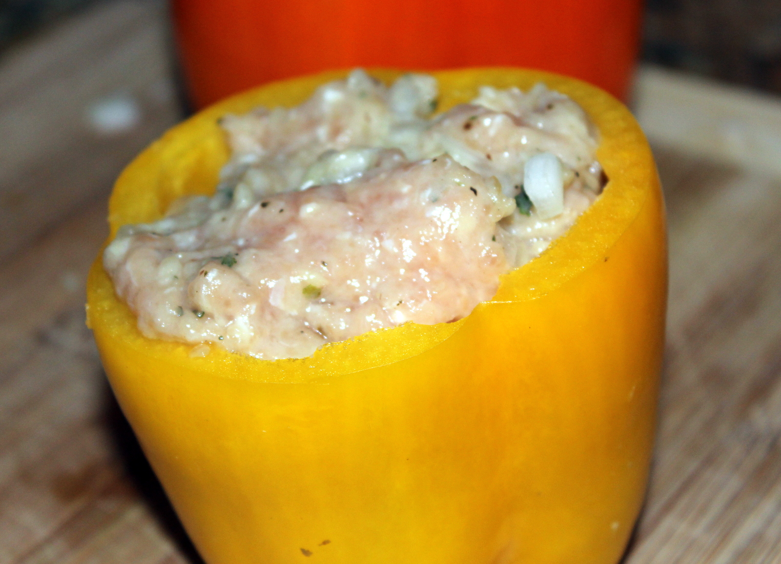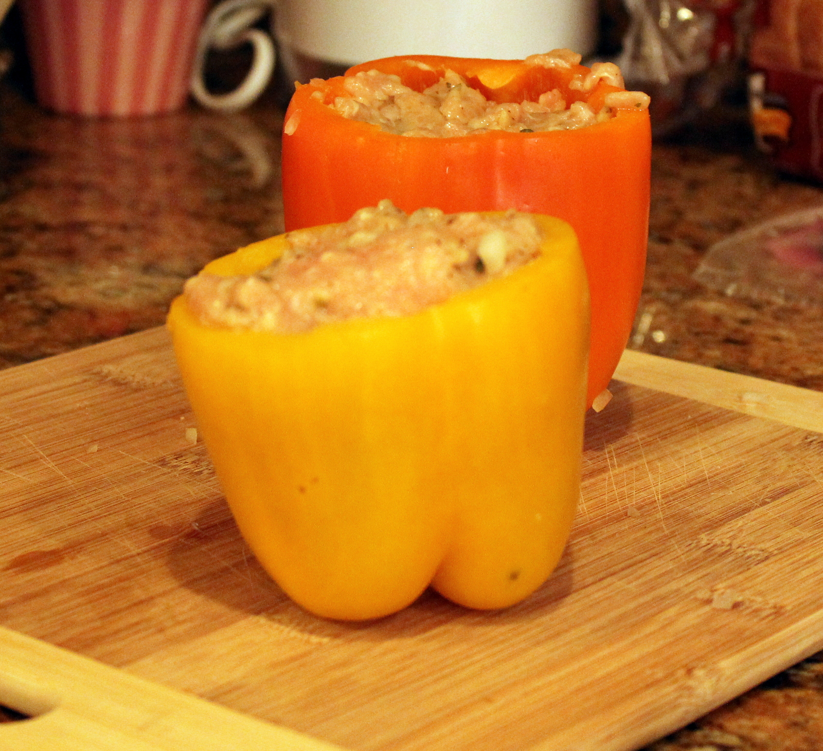 Now I was only making 2 peppers, so after I filled the cavity of the pepper with the chicken mixture I had a lot leftover (hence, the toddler inspired meal). This mixture will fill 4 peppers if you choose to only do the stuffed peppers.