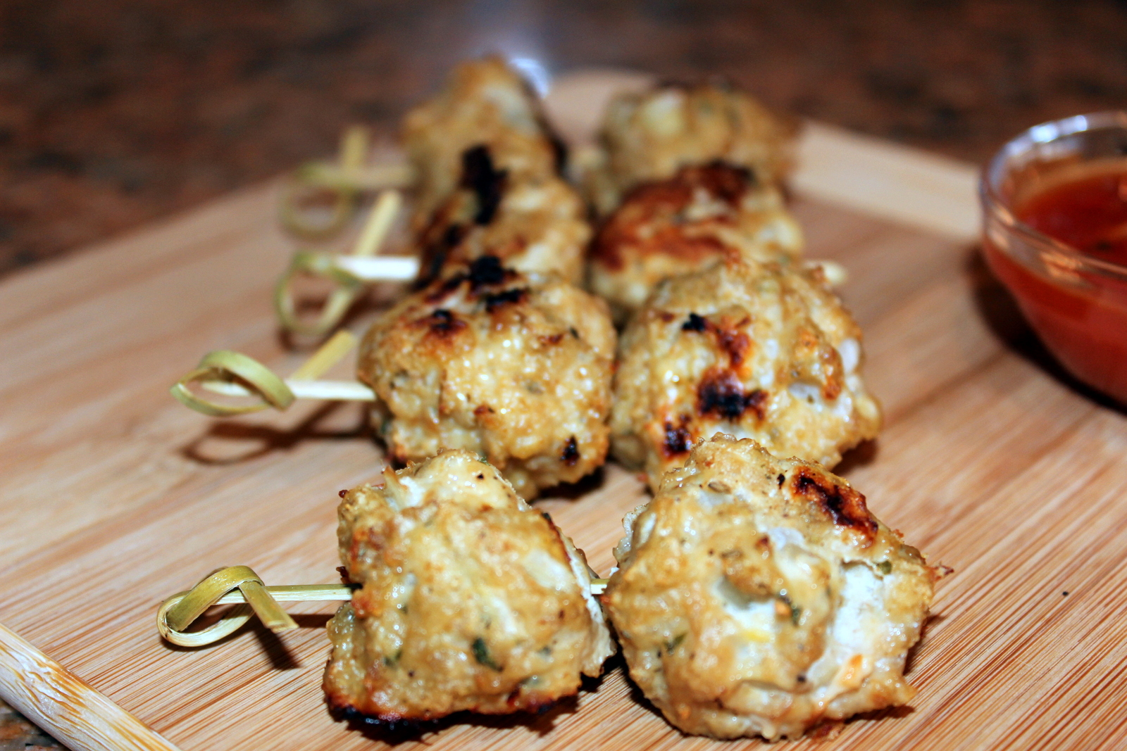 After looking at the leftover chicken mixture I decided to whip up some meatballs for the minster. I added to the mixture 1/3 cup breadcrumbs and a healthy scoop of parmesan cheese. Then I rolled them into little balls and placed them on a greased cookie sheet. It was kind of difficult to roll into balls, because I didn’t use a whole lot of bread crumb to hold the mixture together. Do your best. Imperfection is beauty. Even when your a meatball.