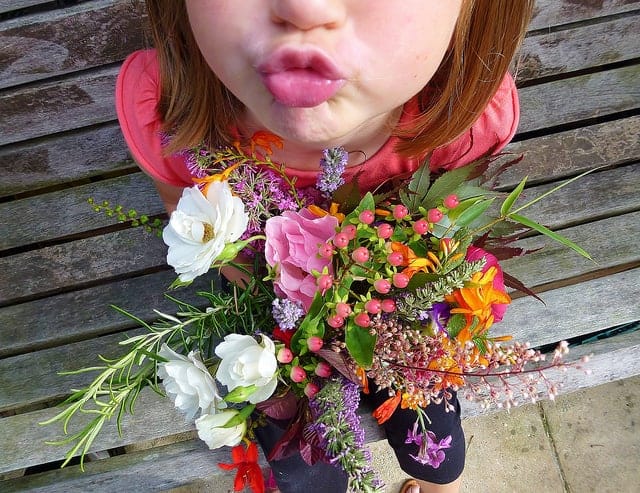 My oldest’s idea? Buy a bunch of flowers and leave a flower on random car windshields at the grocery store.