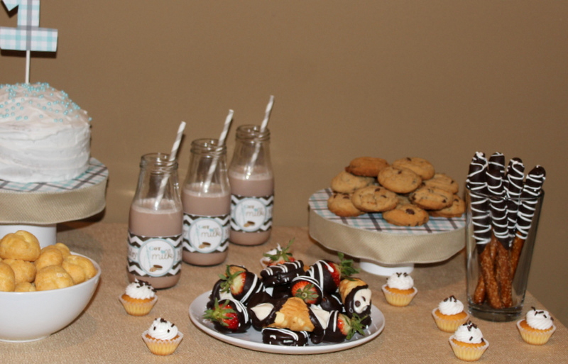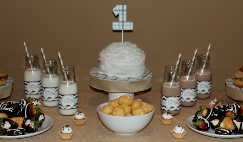 We had such a great time celebrating Joey’s first birthday yesterday! I still can’t believe I have a one year old! I wanted his party to be sweet and fun. I loved the idea of a dessert only party. Simple, easy and full of sugar. I decided to base the theme around Cookies + Milk. There are SO many cute ideas on how to make this theme unique. From milk jugs to cookie buffets, it is adorable.