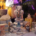 My mother made me an AMAZING diaper cake that was bigger than most wedding cakes I have seen. Isn’t it gorgeous? Just when I thought I would never like the color blue, she makes this beauty with the most adorable baby boy accents and I fell in love.