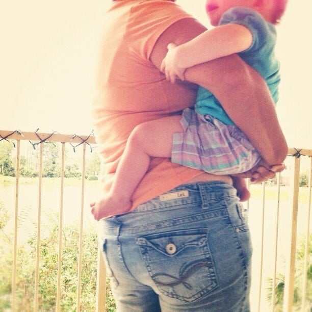 After we parked, I got her out of the car and plopped her on my hip. She was so amped up, her little legs kicked the entire walk from the car to the front door.