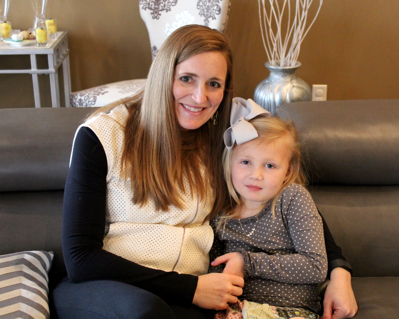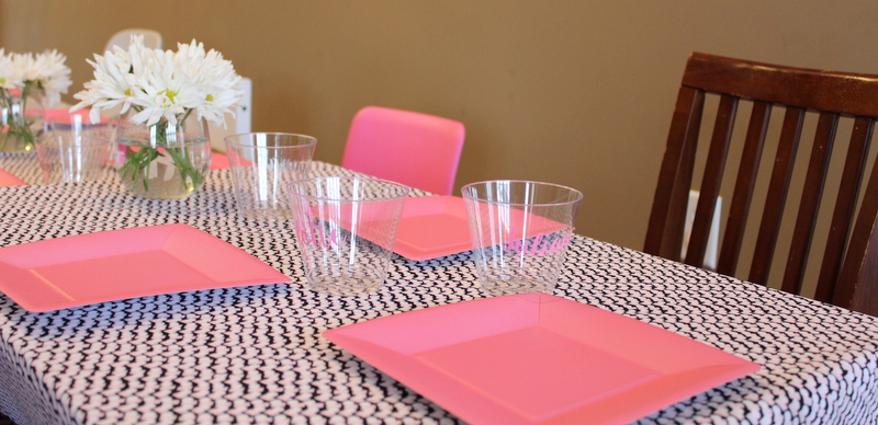 I had leftover pink disposable plates from Mini’s 2nd birthday party (this is why I don’t throw anything away..) so we set the table with those. I bought small clear cups for the girls and personalized each one with their name in vinyl. It was so fun to watch them find their spot at the table and use their very own personalized cup. I picked up a bunch of simple flowers from Costco and trimmed half of them down to make table centerpieces. I used stemless wine glasses as the vases and they were the perfect height!