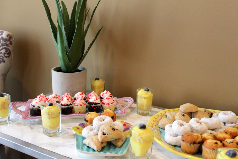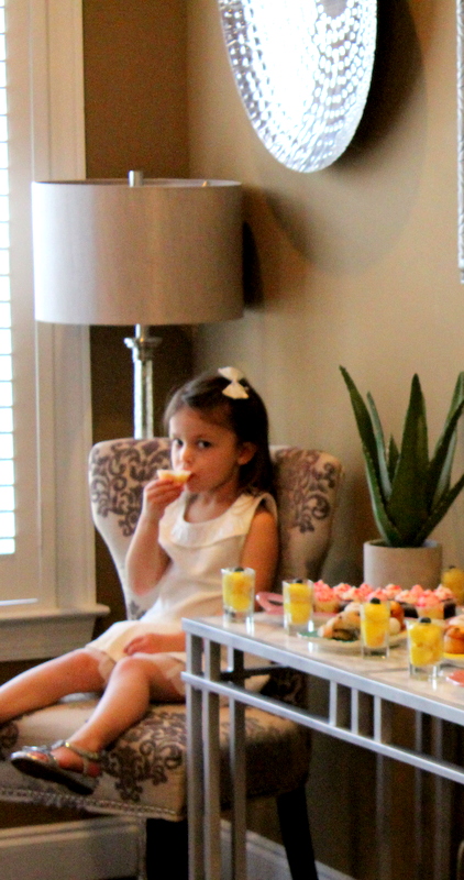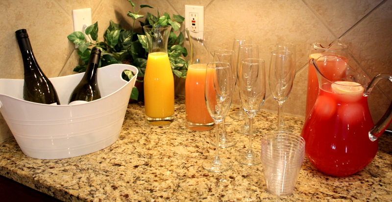 For drinks I grabbed some raspberry lemonade for the girls. I also made a batch of Tazo Iced passion tea lemonade (it’s SO good!). And of course, I had a make your own mimosa bar for the moms! I put out a few bottles of prosecco on ice and had carafes of grapefruit juice and orange juice so moms could make their mimosa to their liking. PARTY TIP: I take a 12 count cupcake pan a few days before the party and pour water into all the cupcake holes. Then I stick a little slice of lemon in each one. I freeze the tin and when it’s frozen pop out all the big ice cubes. It is perfect for keeping pitchers of water and tea cold and you can even see the slices of lemon floating around the drinks.