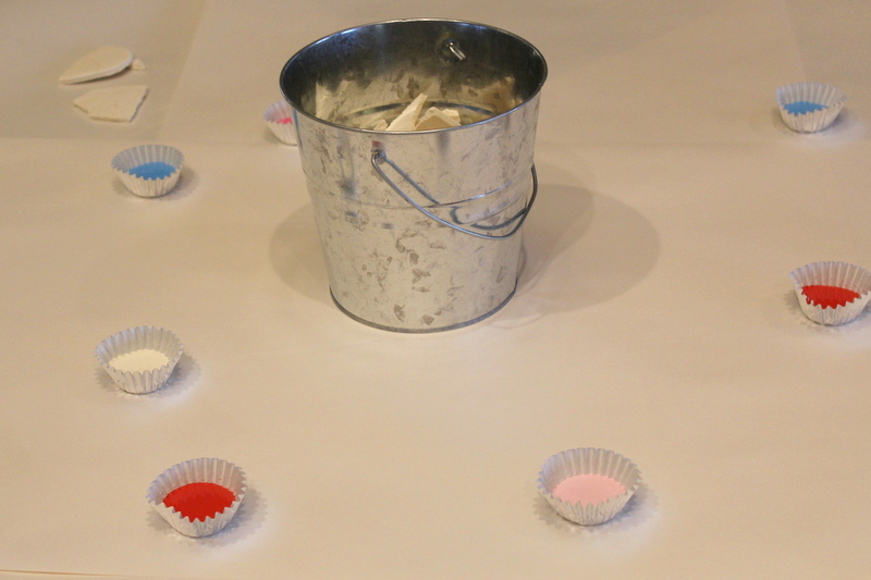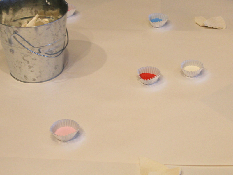My GENIUS of a best friend suggested that I have all the girls paint pieces of the salt dough in the colors that Mini picked at the store, then glue them all onto a board to make a mosaic out of them. Well that is exactly what I did. And I am so in love with this project. (See it in the pictures below!) It is the perfect keepsake from her tea party that all of her friends had a part in making. Mini can’t decide where in her room to hang it, but she thinks it is just “awesome”!