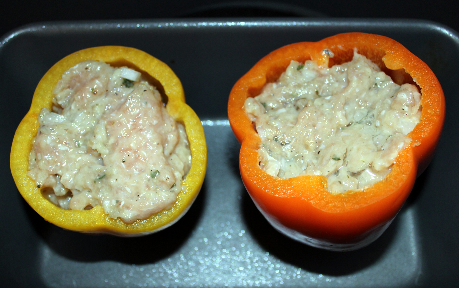Now I was only making 2 peppers, so after I filled the cavity of the pepper with the chicken mixture I had a lot leftover (hence, the toddler inspired meal). This mixture will fill 4 peppers if you choose to only do the stuffed peppers.
