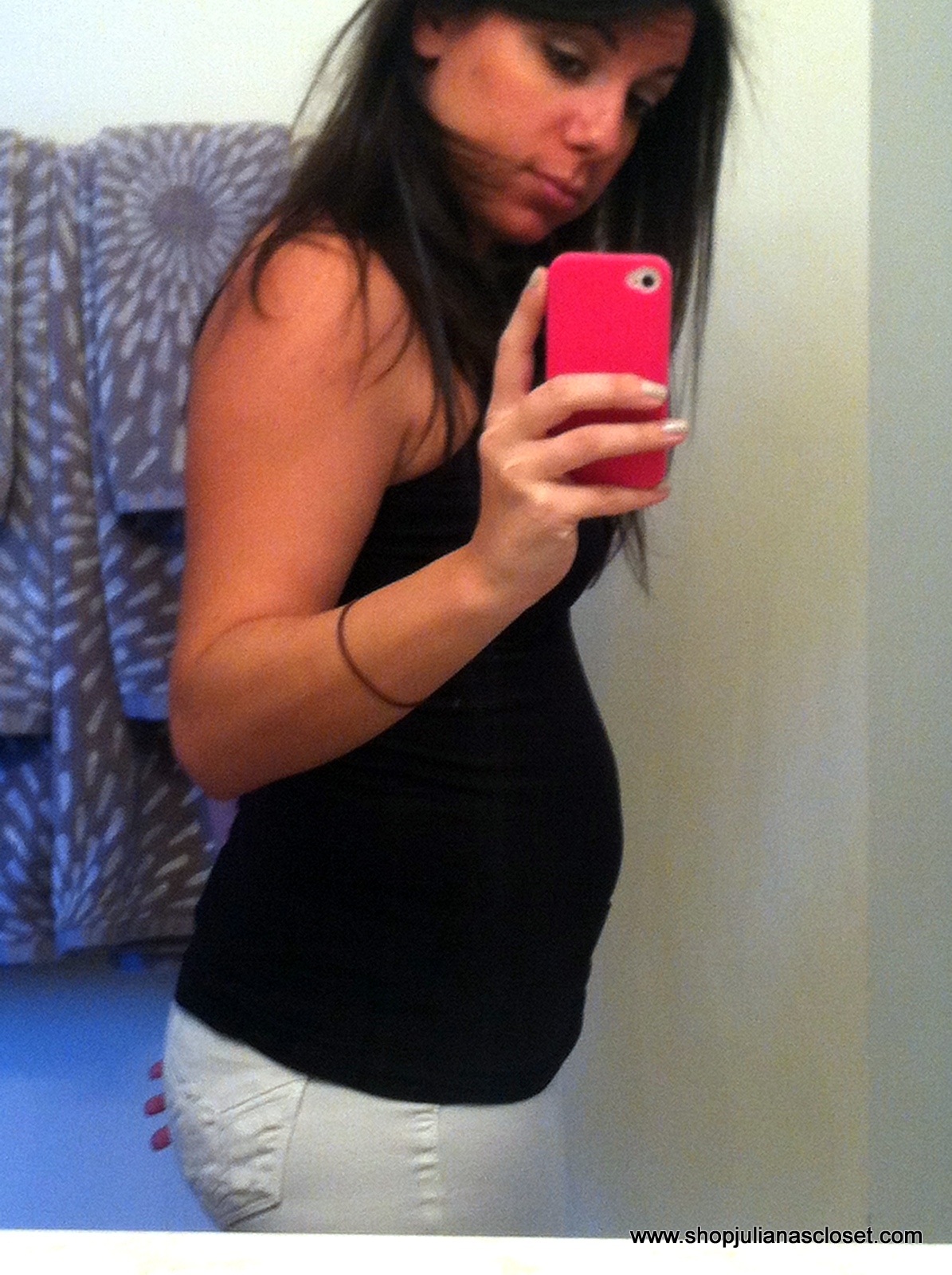 Forgive these pictures for being so strange looking.  Baby J is a definite houdini.  I predict the hard, definite bump will show up next week for good, no more coming and going nonsense.   Right now it’s a tiny bump in the morning and a full blown bump at night…