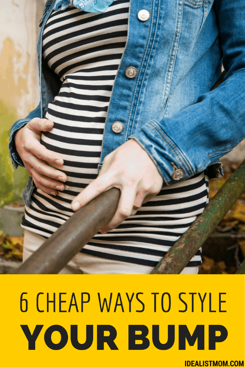 Instead, you’re going to look for a few flattering staples you can mix and match with statement pieces from your existing wardrobe. Don’t be afraid to go for form-fitting stretchy tops, either! Honor your belly, don’t hide it. Remember: In general, loose tops will just make you look even bigger.