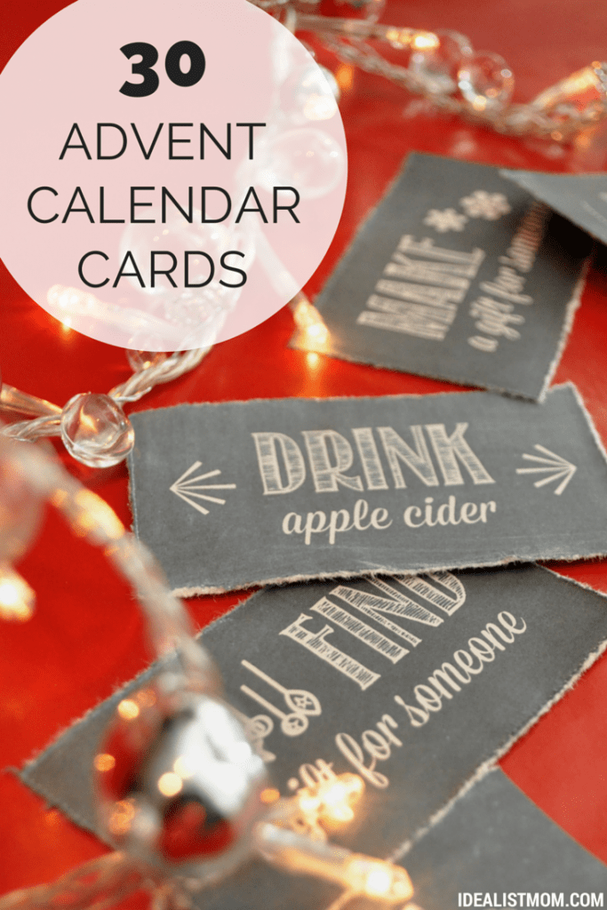 Below, you can get the full set of chalkboard-style Advent calendar activity cards, FREE for you to make your holidays merry and bright and chalkboard-y, all at once.