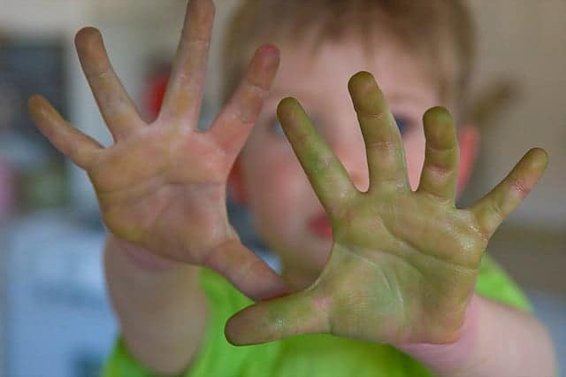The first: Do you think it’s okay to use rubbing alcohol to clean the kids’ art table? I focused on the solution, not the problem. Score!