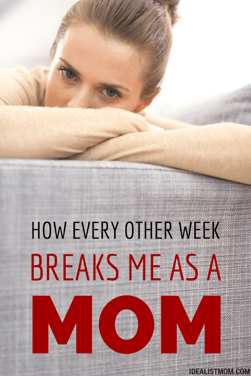 Karrie, I’m so sorry to hear you’re struggling with this too. We’ve been having this weekly schedule for 7 years now, I think. I would love to tell you it gets easier. It has gotten less heart-wrenching, but it still hurts. We’re used to the schedule now, but sometimes it’s just hard. We try to Facetime as often as possible when we’re apart, and that helps. I wish there were a magic fix for everyone in this difficult situation. Sending you strength for the hard times. <3