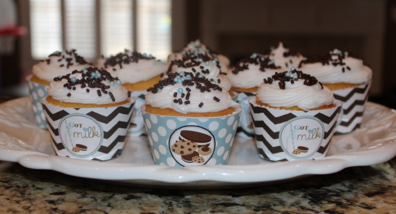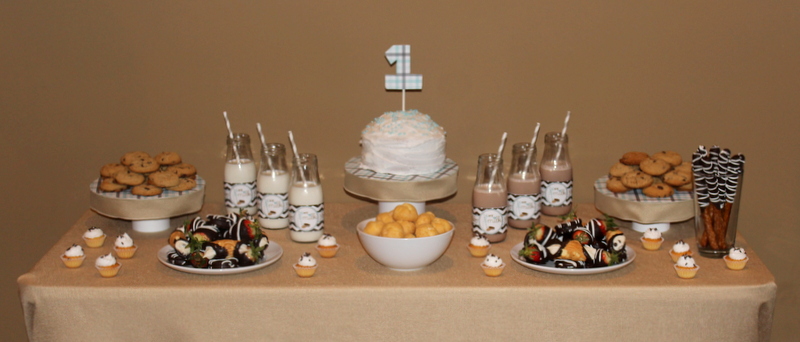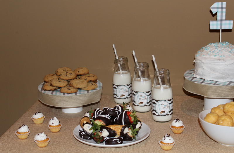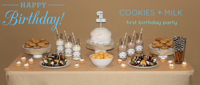 We had such a great time celebrating Joey’s first birthday yesterday! I still can’t believe I have a one year old! I wanted his party to be sweet and fun. I loved the idea of a dessert only party. Simple, easy and full of sugar. I decided to base the theme around Cookies + Milk. There are SO many cute ideas on how to make this theme unique. From milk jugs to cookie buffets, it is adorable.