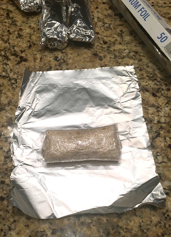 Wrap each burrito first in saran wrap and then in a piece of aluminum foil. Toss them all in the freezer until you are ready to eat them. When you want one, take it out of the aluminum foil. Place the burrito in the saran wrap into the microwave. Microwave the burrito on 50% for 1 minute. Flip it over and do it again, 50% for 1 more minute. Then unwrap it and enjoy!