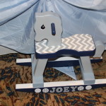 Baby Joey got spoiled with a ton of presents. My sister painted a beautiful monogram for his wall that will match his bedding perfectly. My oldest friend suprised me with a hand painted rocking horse that will look perfect in his nursery. Joey got larger than life stuffed animals, a ton of adorable baby clothes in his style “grandpa chic”, a handmade baby blanket from his GiGi, and adorable sweaters made by a special family friend. To say spoiled is truly an understatement. He is so lucky to have so many people that love him so much already.