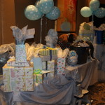 My mother made me an AMAZING diaper cake that was bigger than most wedding cakes I have seen. Isn’t it gorgeous? Just when I thought I would never like the color blue, she makes this beauty with the most adorable baby boy accents and I fell in love.